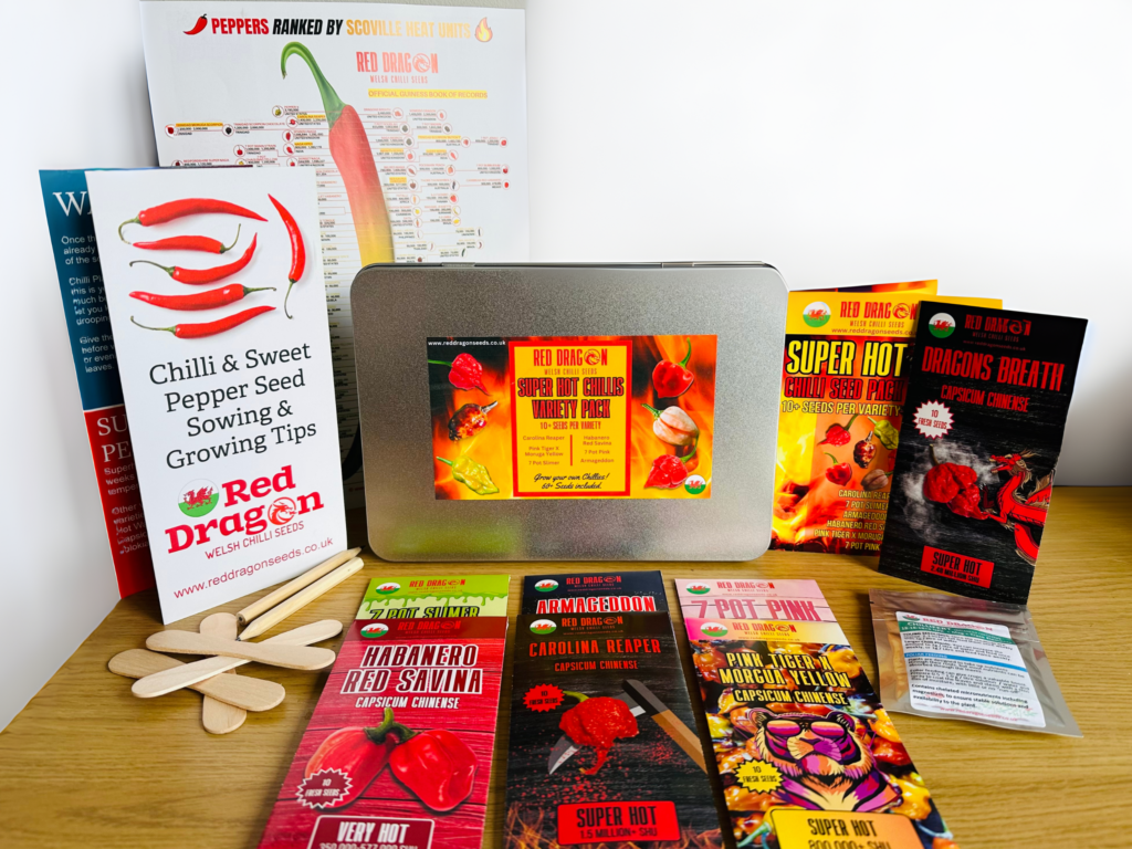 Begin your chili-growing journey by selecting the right seeds. Chilies come in a variety of shapes, sizes, and heat levels. From the milder Jalapeños to the scorching Carolina Reapers, choose based on your heat preference and culinary use. We found a great range of chilli seeds from Red Dragon Seeds who are based in South Wales. The Super hot seed collection is just fantasic.